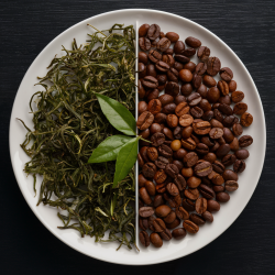 – grind an equal amount of your preferred coffee beans, along with a pinch of Osmanthus Oolong tea leaves (about 1/2 teaspoon) in a coffee grinder